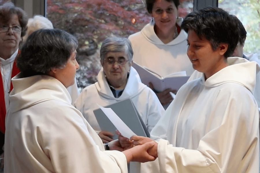 Carmelite Sister Judy Long accepts the temporary vows of Carmelite Sister Celia Ashton. Sister Celia is expected to make her final vows in approximately three years. (Courtesy Diane Barr)Read More