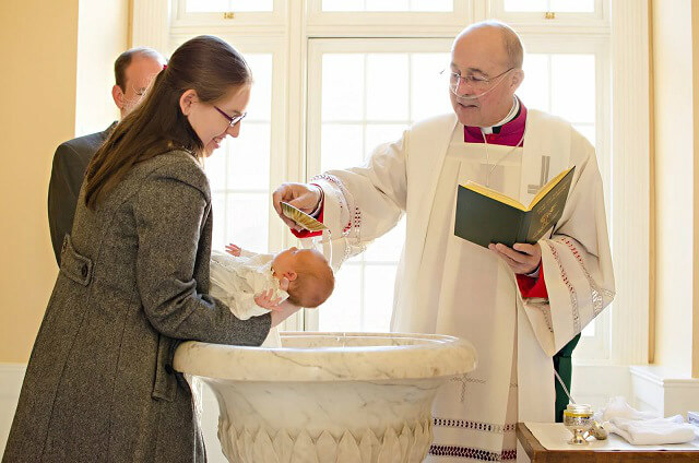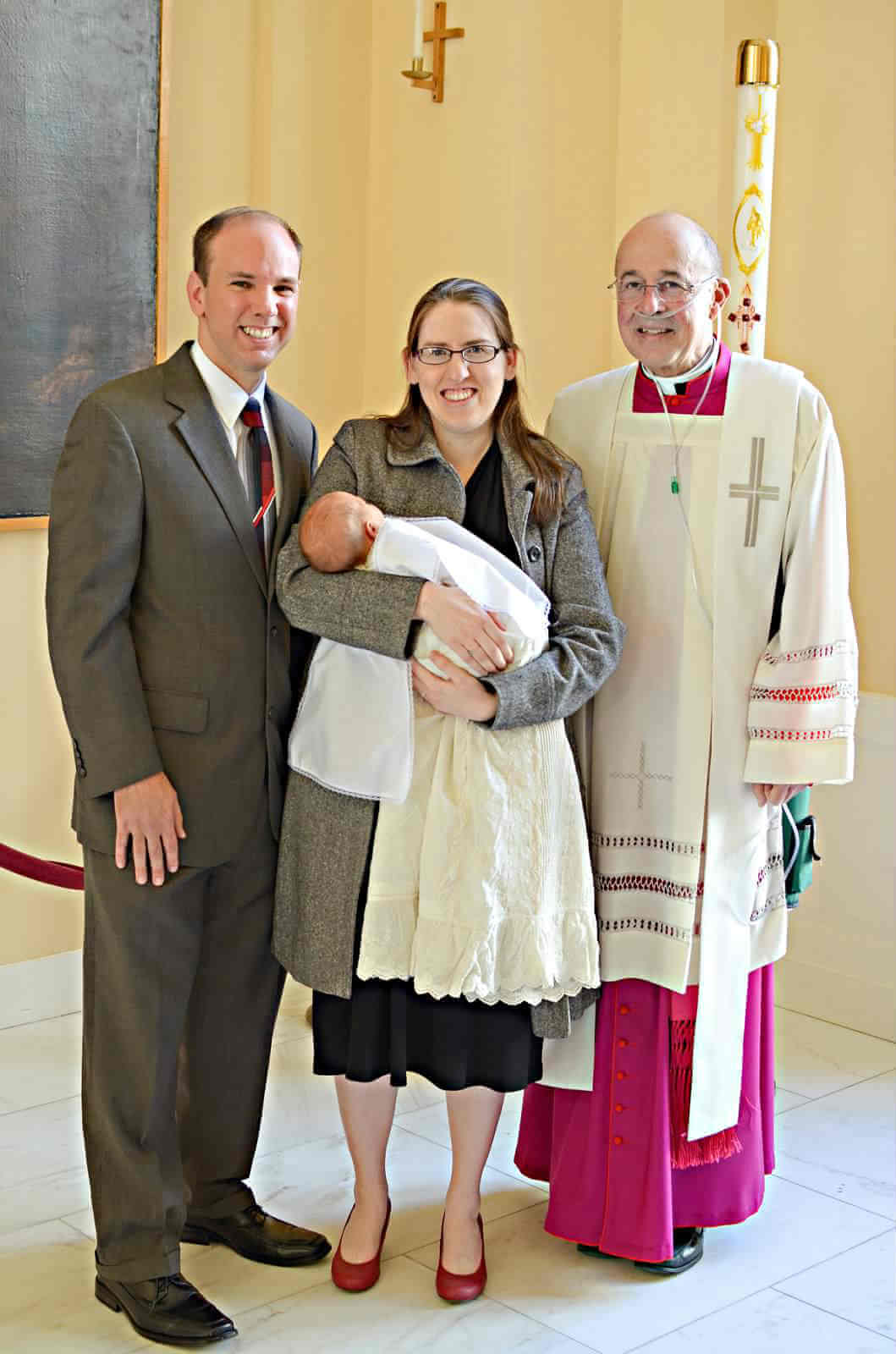 Monsignor Arthur Valenzano baptizes George and Treasa's daughter in 2014 at the Basilica of the National Shrine of the Assumption of the Blessed Virgin Mary in Baltimore. (Courtesy Kathryn Beyer)Read More