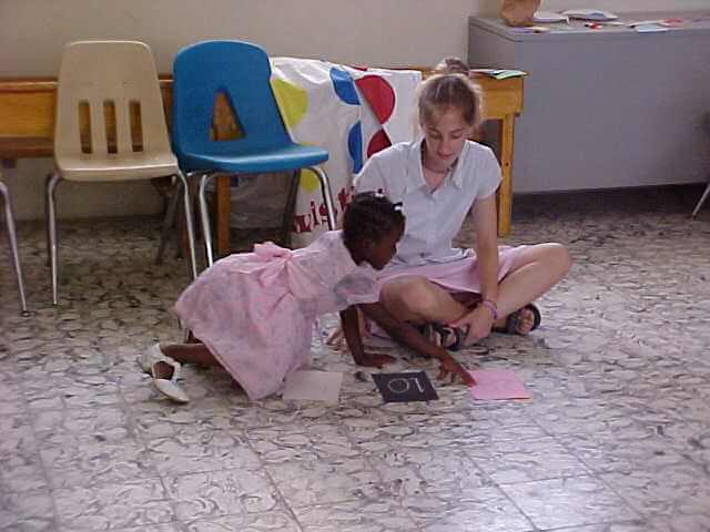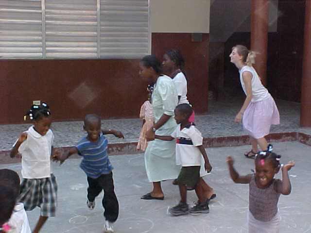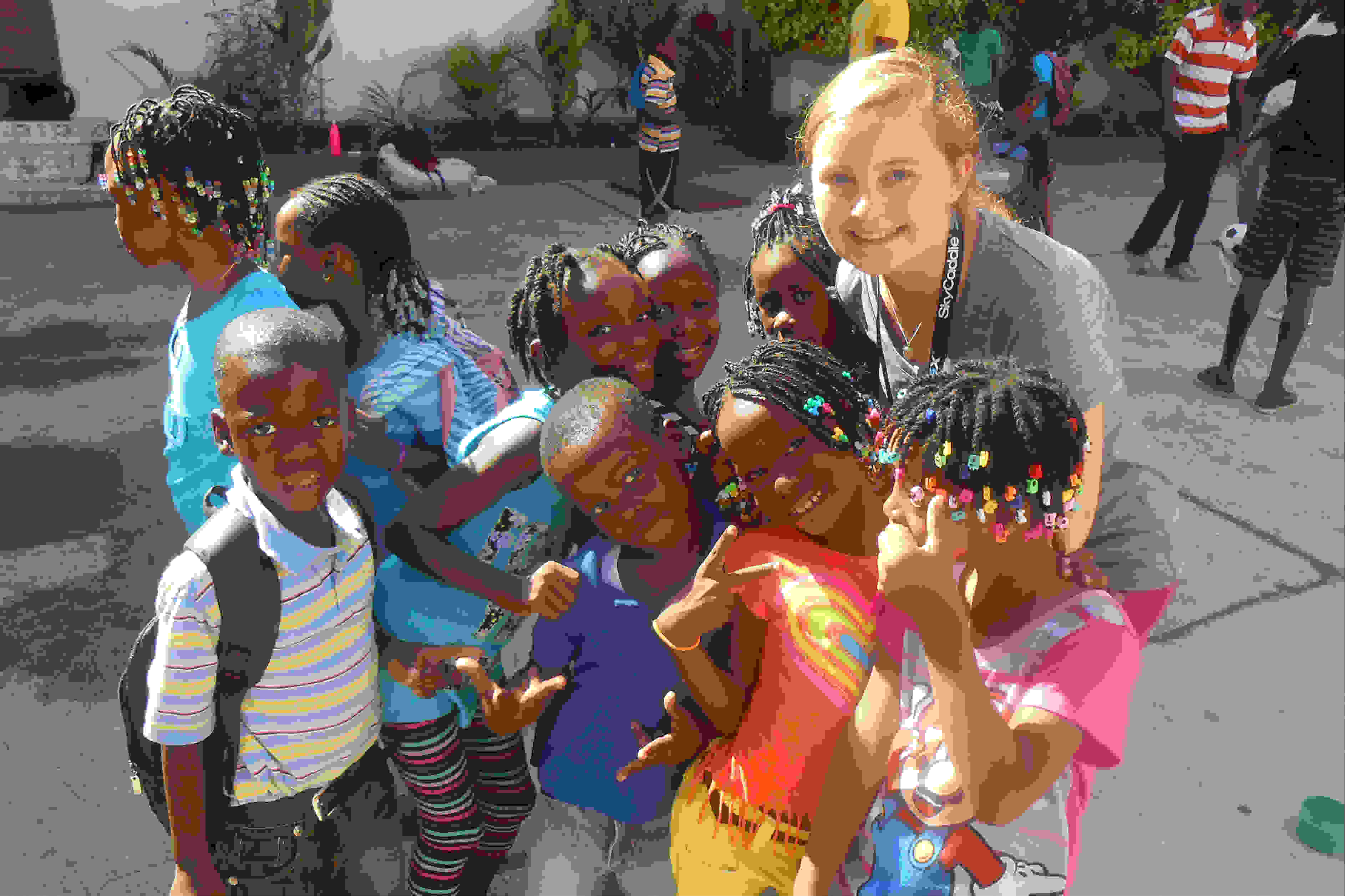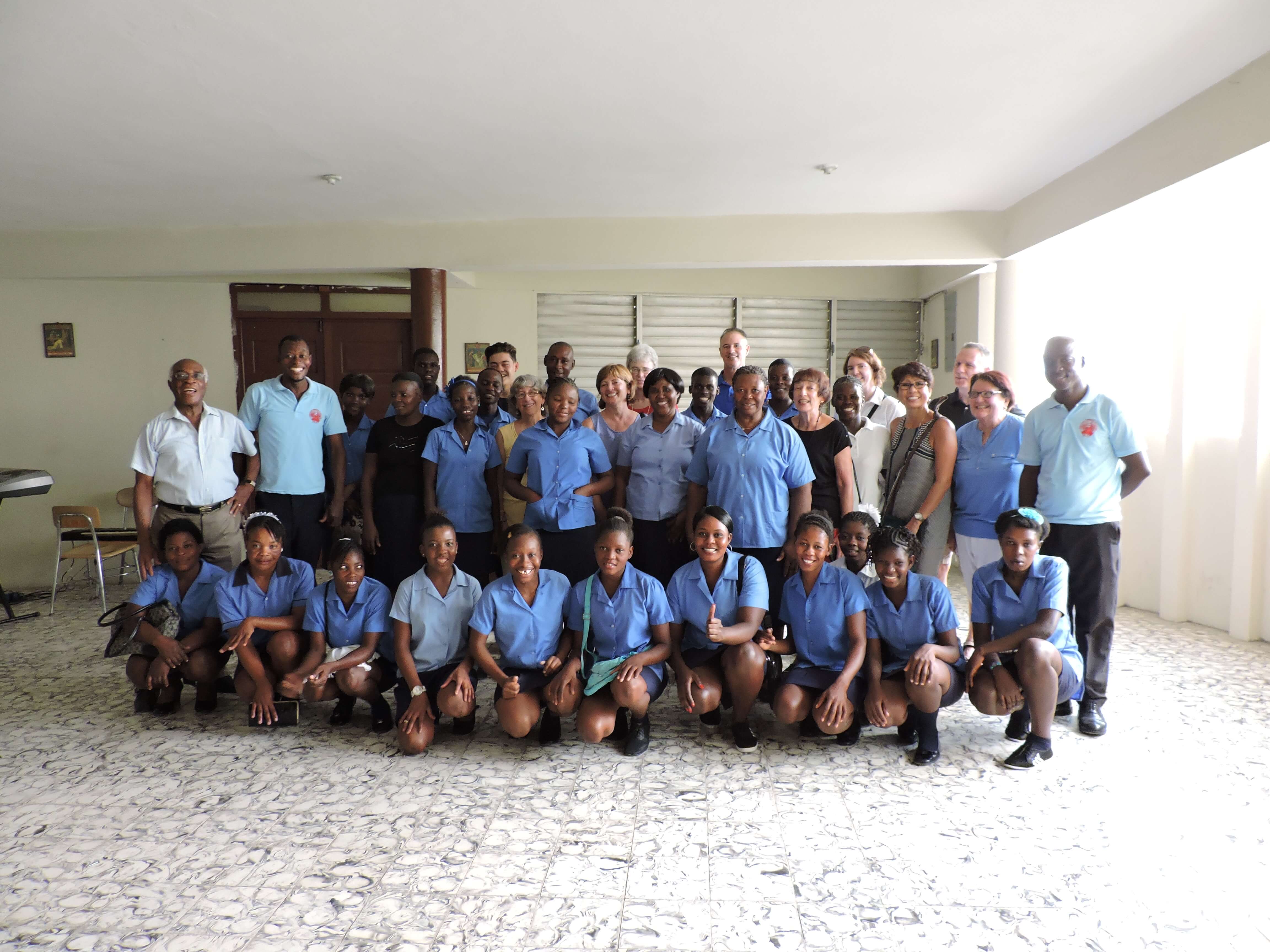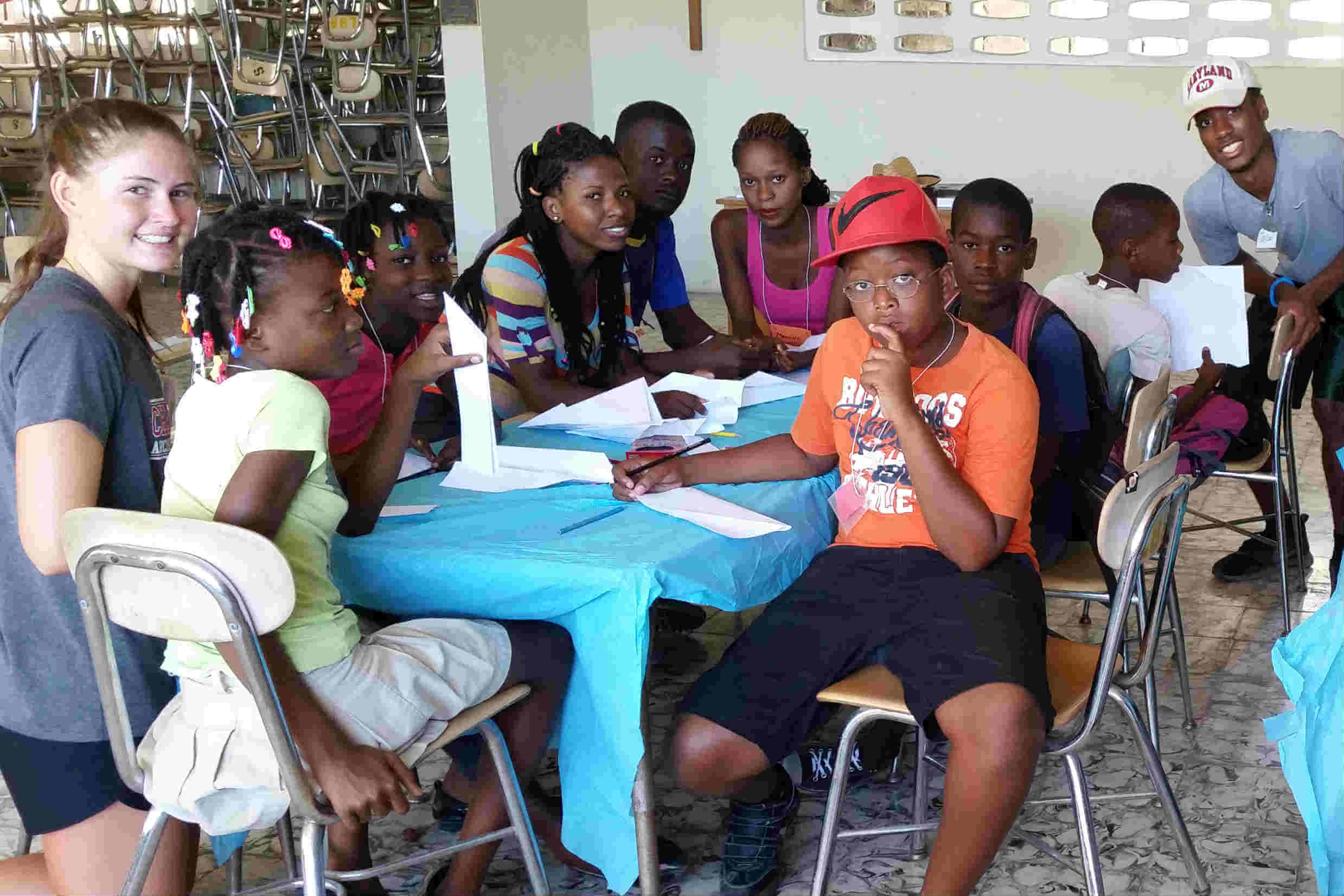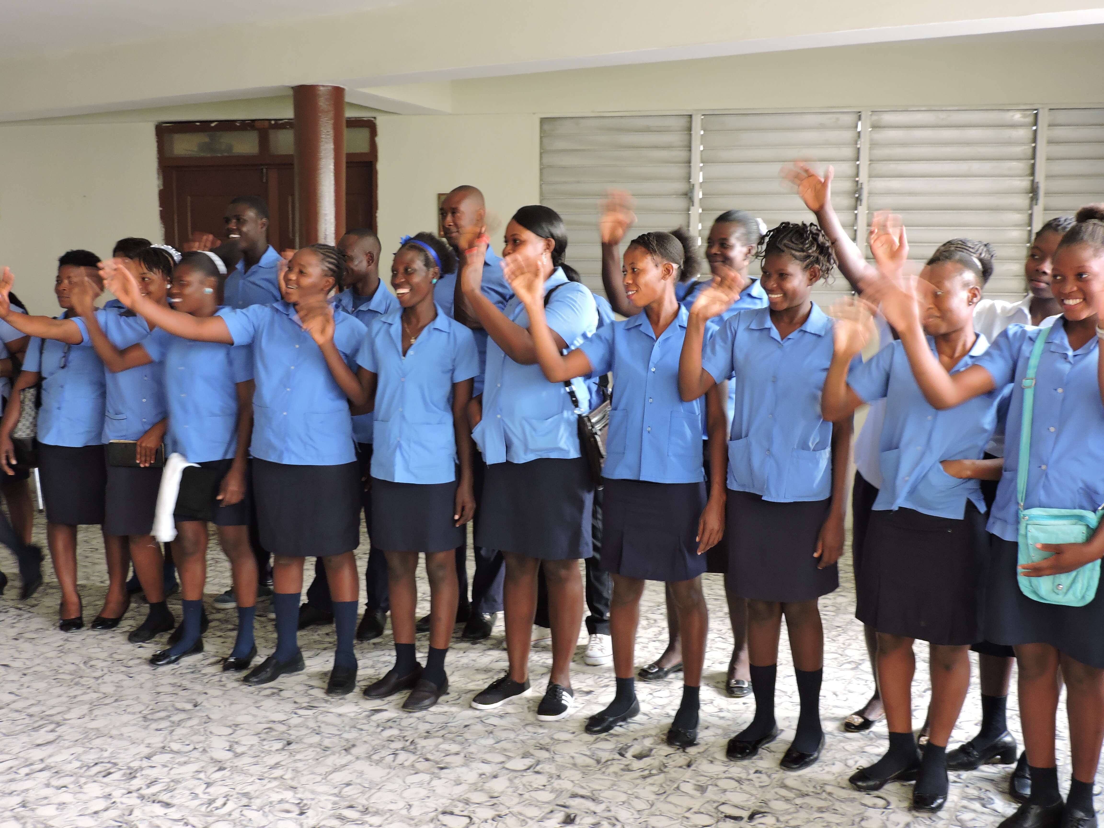 Spalding students painting a mural at their sister school in Saint Marc, Haiti