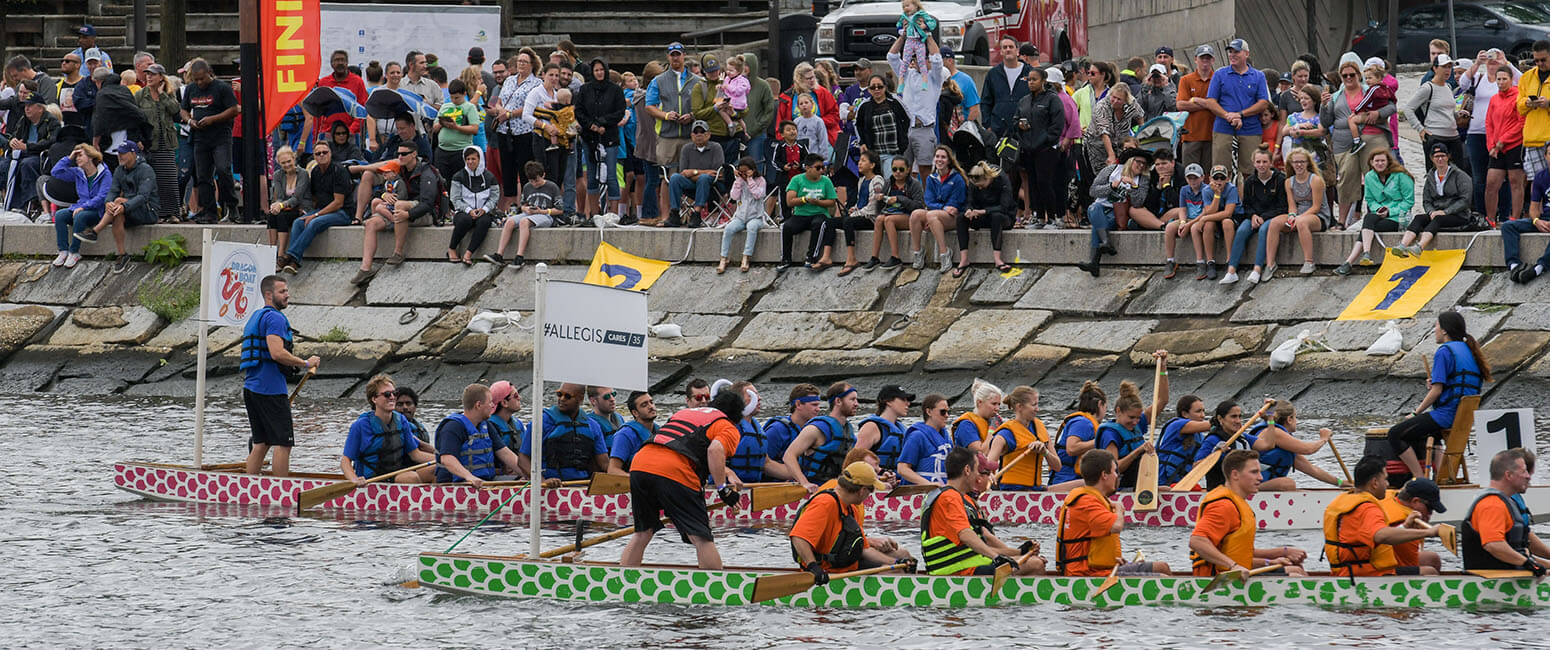 Heavy rain could not deter spectators from lining Baltimore’s Inner Harbor to watch the Catholic Charities Dragon Boat Races Sept. 8. (Kevin J. Parks/CR Staff)