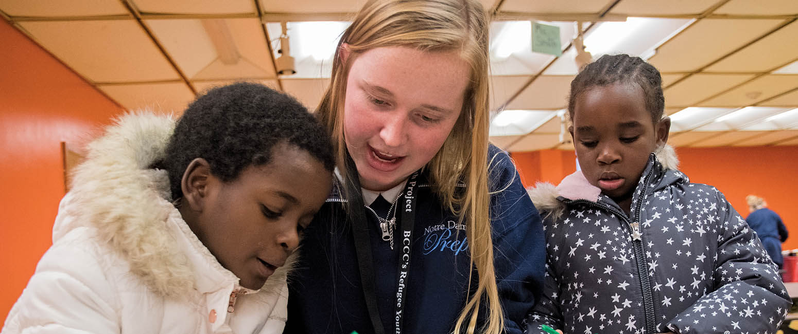 Haley Whitehead, a senior at Notre Dame Preparatory School in Towson, helps Moravia Park Elementary students Rejina Iramugisha and Issrah Makine make Christmas crafts. Rejina is from the Democratic Republic of the Congo, and Issrah is from Sudan. (Kevin J. Parks/CR Staff)Read More
