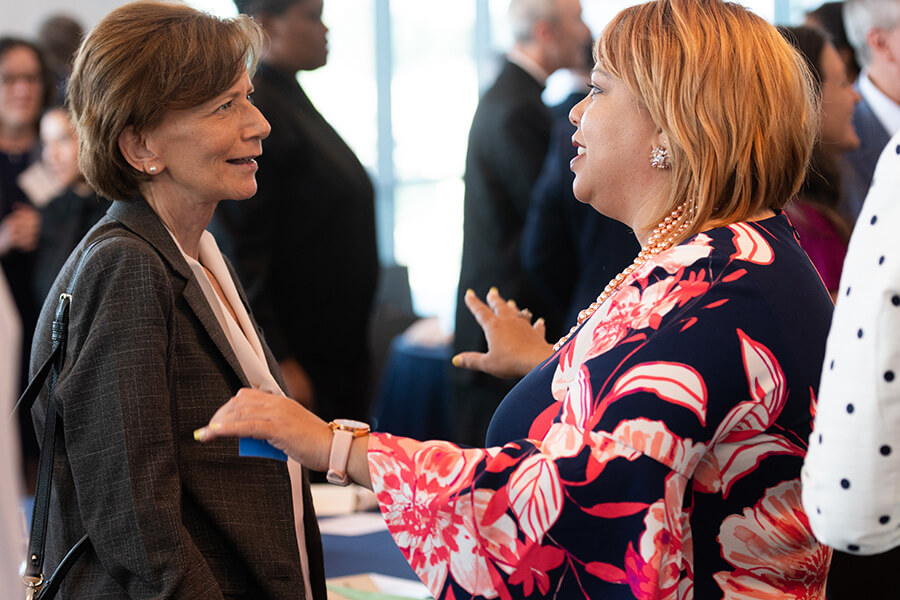 Dr. Donna Hargens, Ed.D., superintendent of Catholic schools, left, and Constellation representative, Janaé Lawson, meet following the Archdiocese of Baltimore’s Partners in Excellence scholarship breakfast at the Legg Mason Tower in Baltimore Sept. 6. (Kevin J. Parks/CR Staff)Read More