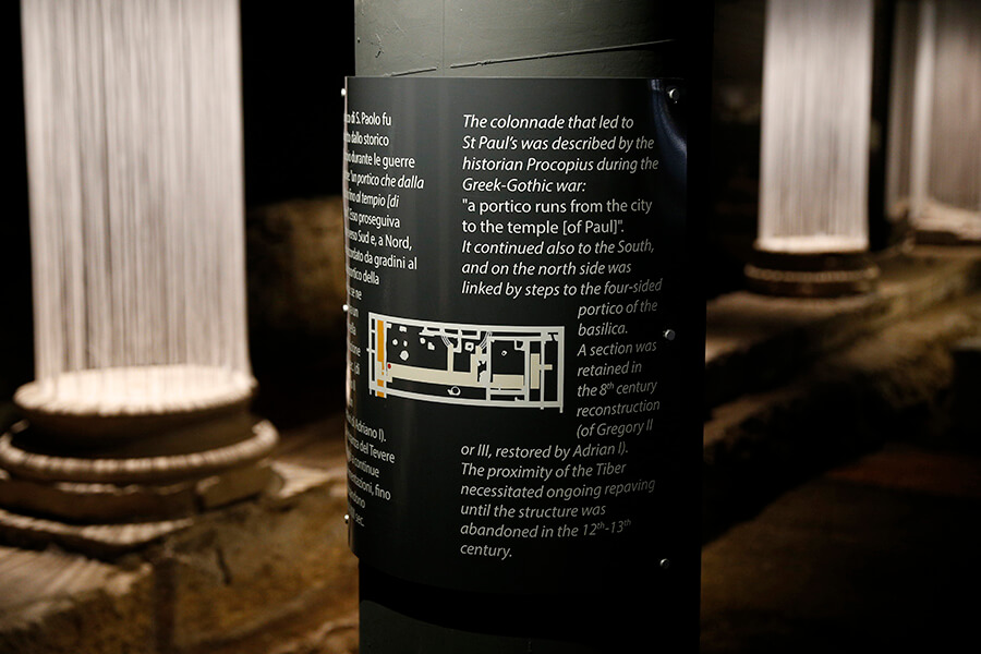 Descriptions in English and Italian are seen in an archeological site adjacent to the Basilica of St. Paul Outside the walls in Rome Sept. 6. The site contains the remains of structures from late antiquity and the medieval period that were built near the shrine to St. Paul. Unearthed between 2007-2009, the site has recently...Read More