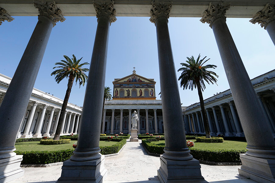 The Basilica of St. Paul Outside the walls is pictured in Rome Sept. 6. A site adjacent to the basilica contains the remains of structures from late antiquity and the medieval period that were built near the shrine to St. Paul. Unearthed between 2007-2009, the site has recently been upgraded with better lighting and cosmetic...Read More