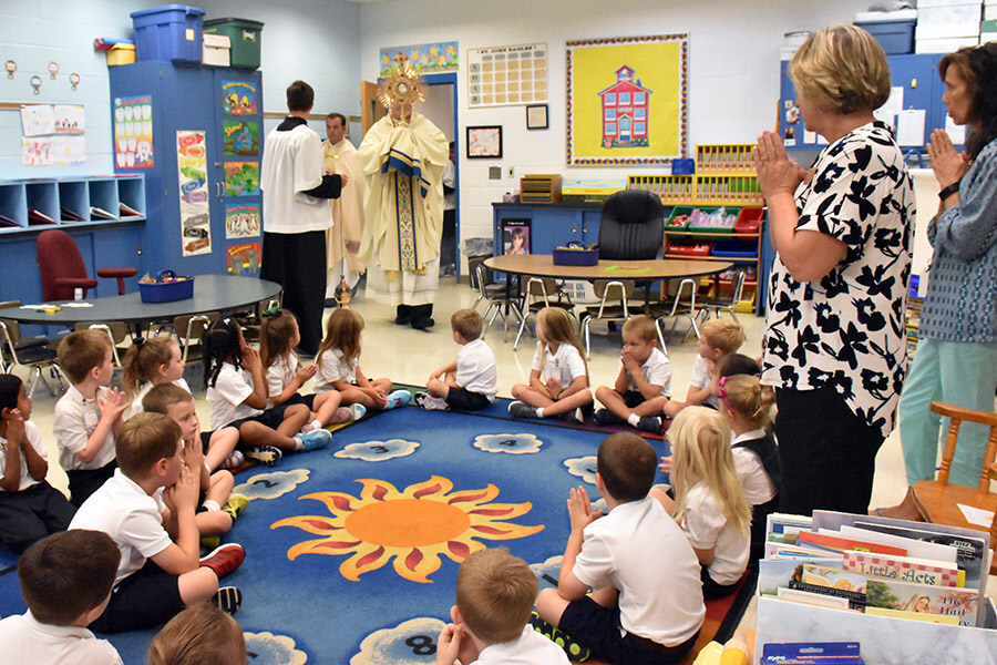 Father Mark Bialek, pastor of St. John in Westminster, blesses the kindergarten class at the parish's school during a eucharistic procession Sept. 7, the archdiocesan Day of Reparation. (Emily Rosenthal/CR Staff)Read More