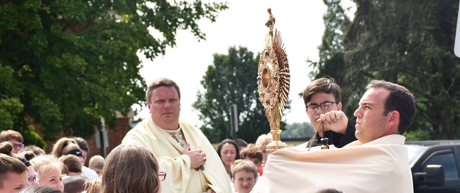 Father Andrew DeFusco, associate pastor of St. John in Westminster, provides a final blessing during a Eucharistic procession Sept. 7, the archdiocesan Day of Reparation, outside St. John School. (Emily Rosenthal/CR Staff)Read More