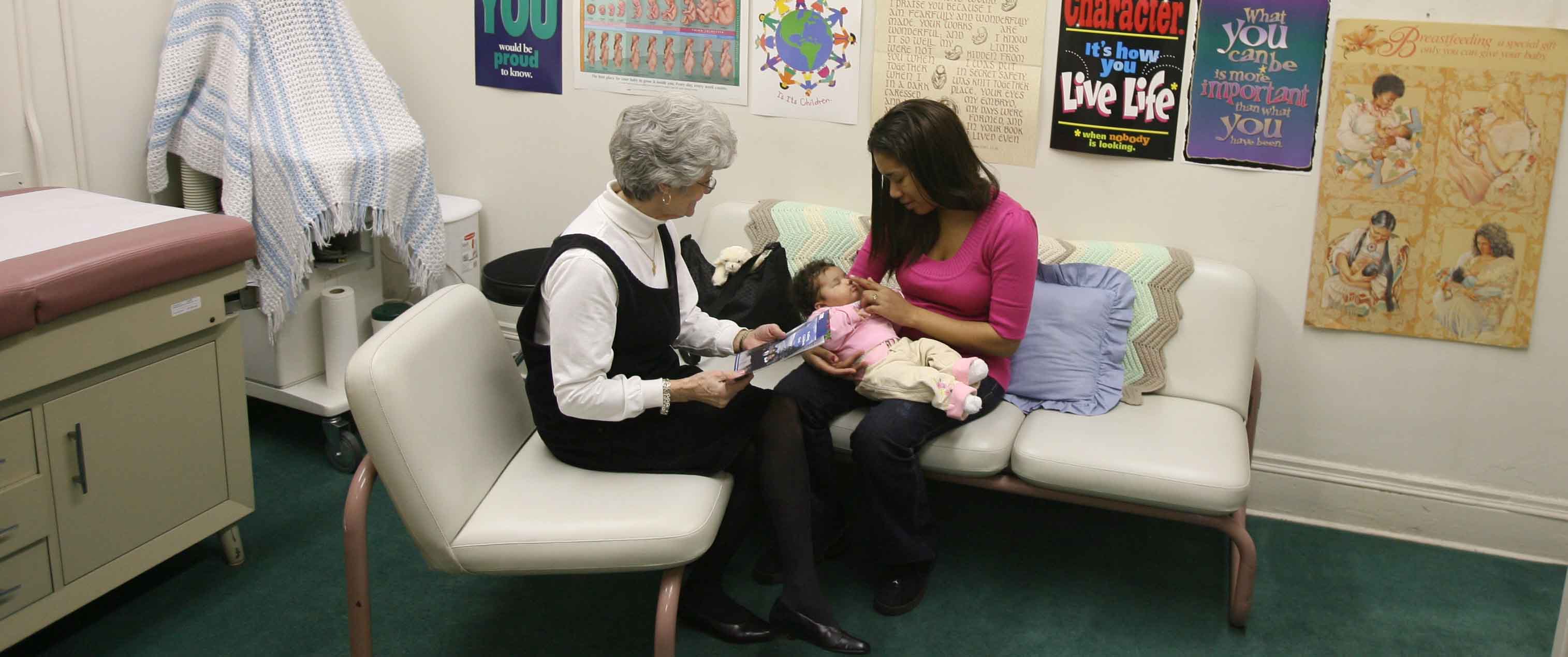 Sharon McCall (left) of the Greater Baltimore Center for Pregnancy Concerns in Baltimore, counsels Angelicia Ackwood with her baby, Gabriella, in a 2008 file photo. (CR file)Read More