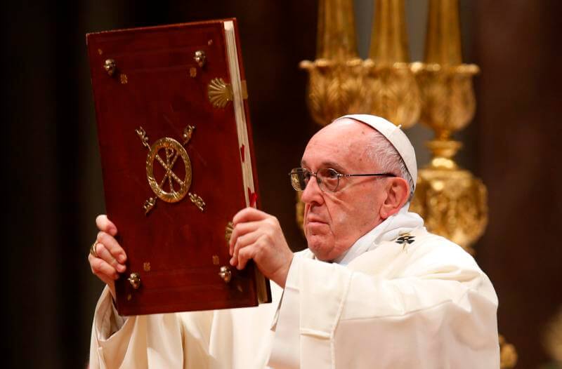 Pope Francis raises the Book of the Gospels as he celebrates Mass marking the feast of Mary, Mother of God, in St. Peter's Basilica at the Vatican Jan. 1. (CNS photo/Paul Haring)Read More