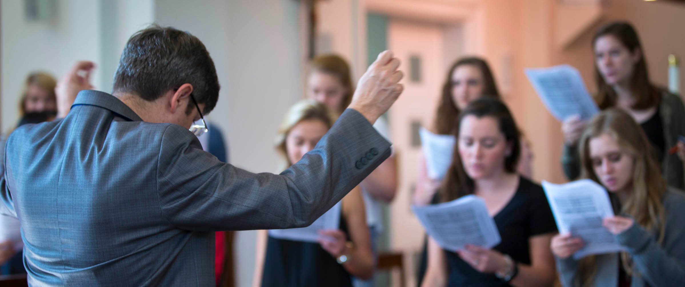 Timothy S. McDonnell, director of music ministries at the Institute of Sacred Music, Benjamin T. Rome School of Music at The Catholic University of America in Washington, conducts an Oct. 10 Gregorian chant rehearsal at the school's St. Vincent Chapel. Gregorian chant is the singing of the liturgy and its texts are almost entirely scriptural....Read More