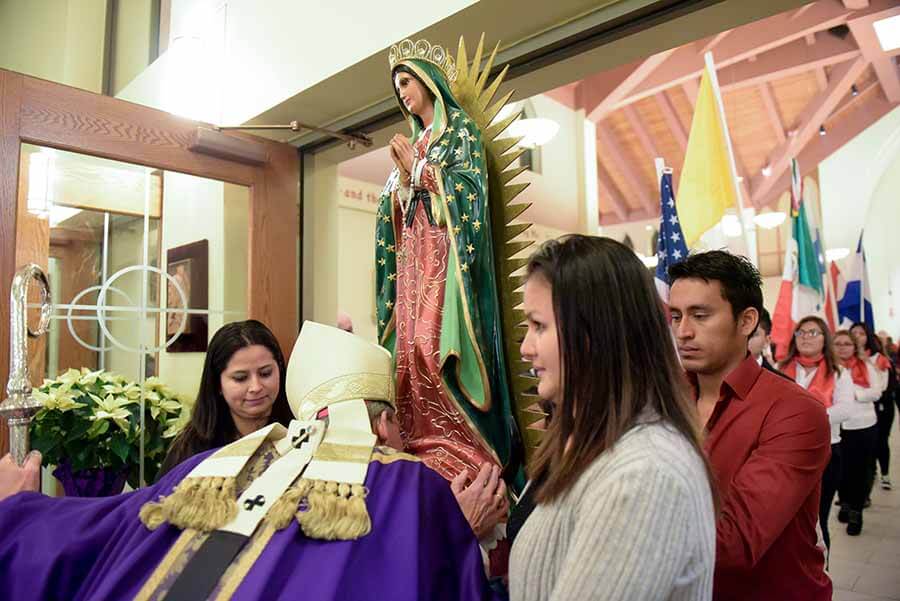 Archbishop William E. Lori venerates the statue of Our Lady of Guadalupe following a Mass celebrating her feast day at St. John Parish in Westminster Dec. 9. (Kevin J. Parks/CR Staff)Read More