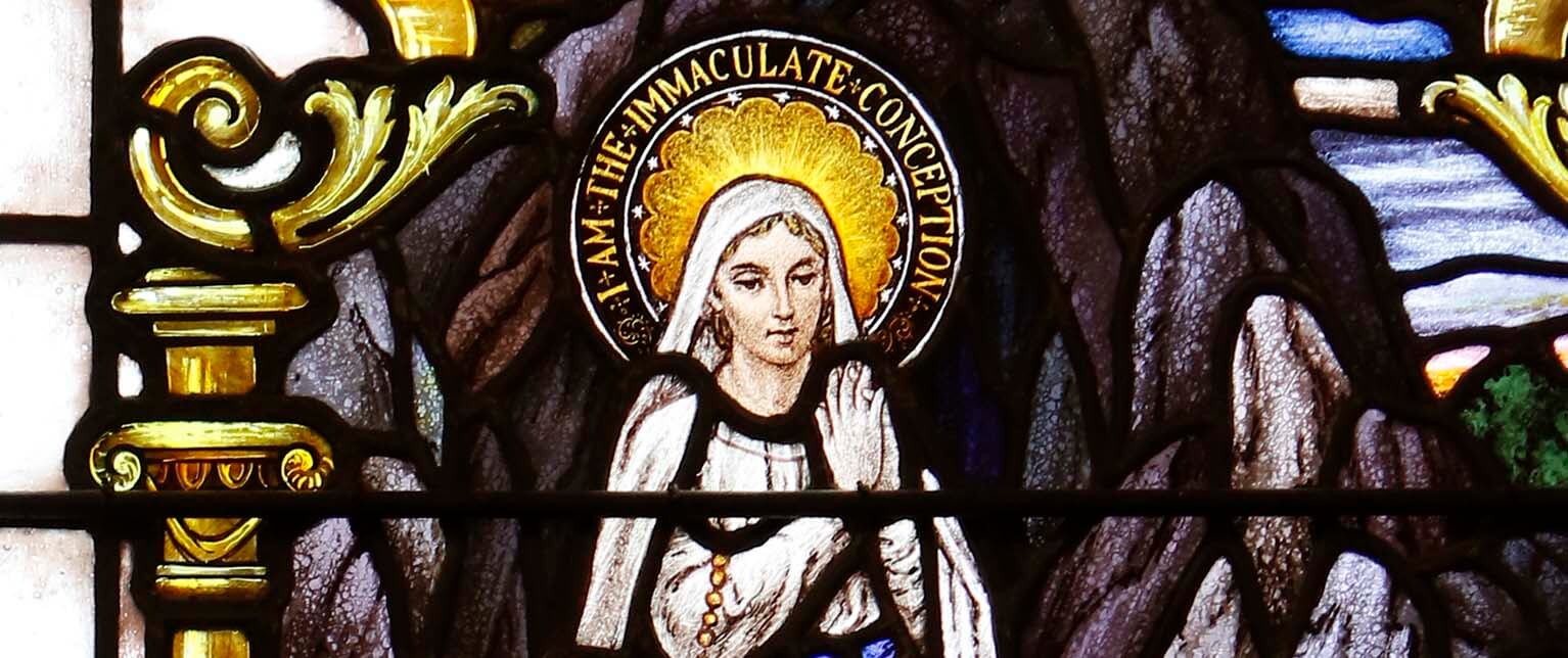 This stained-glass window at St. Mary Church in Manhasset, N.Y., depicts Mary appearing to St. Bernadette Soubirous in Lourdes, France, as the Immaculate Conception in 1858. Pope Pius IX proclaimed in 1854 that Mary was conceived free of original sin. The solemnity of the Immaculate Conception, the patronal feast of the United States, is celebrated...Read More