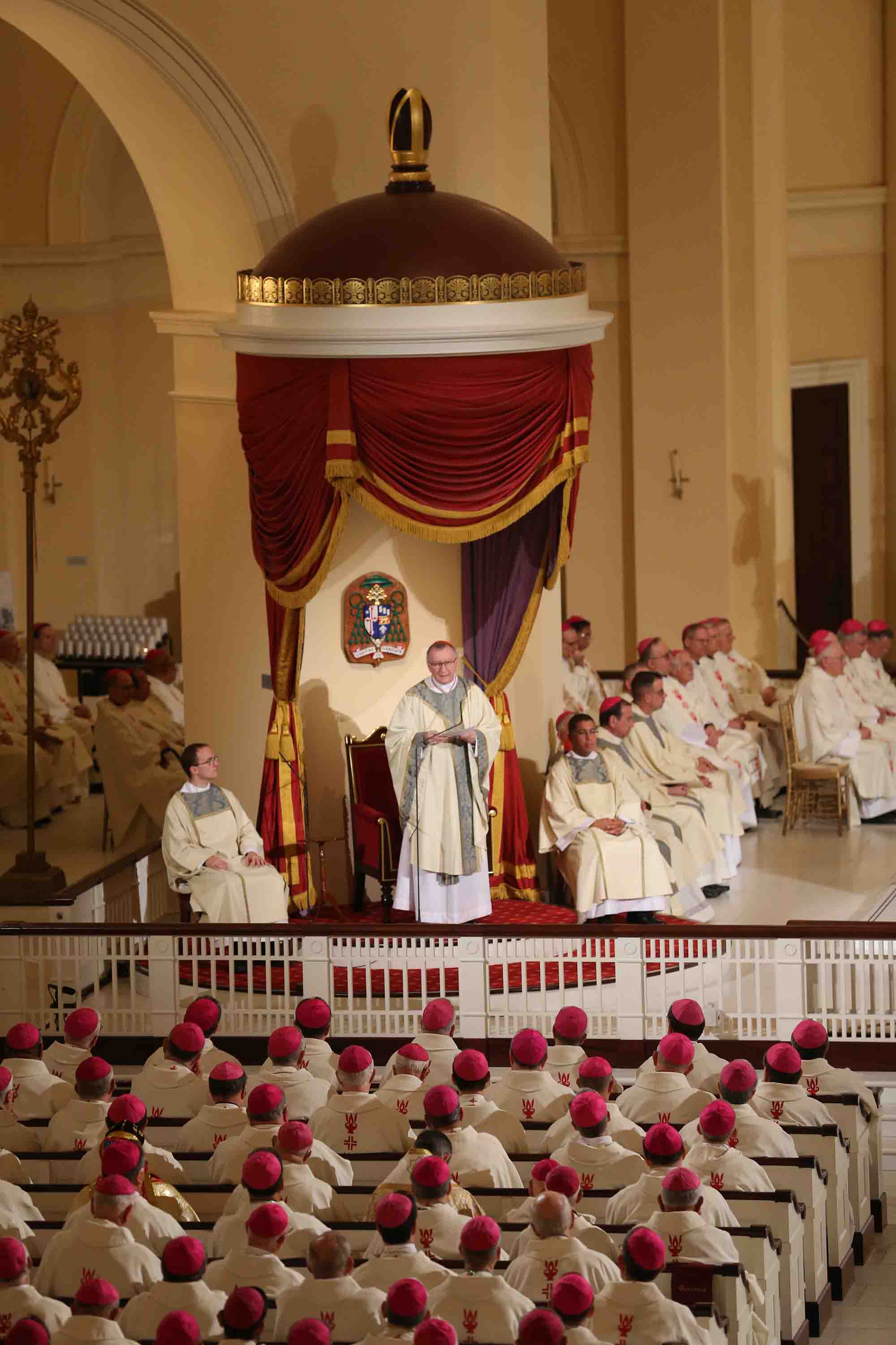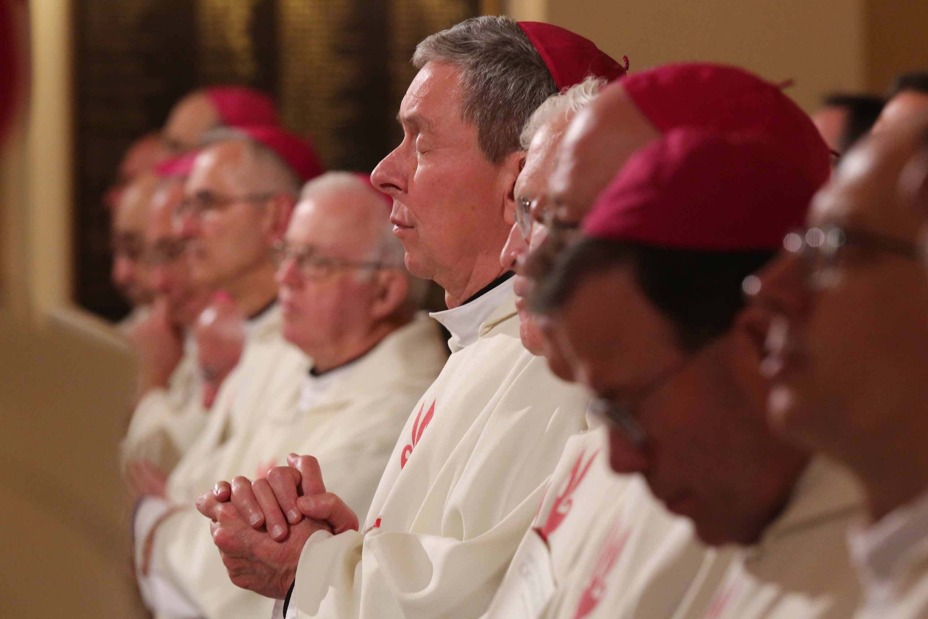 Bishops pray during Mass Nov. 12 at the Basilica of the National Shrine of the Assumption of the Blessed Virgin Mary in Baltimore on the eve of the fall general assembly of the U.S. Conference of Catholic Bishops. (CNS photo/Bob Roller)Read More