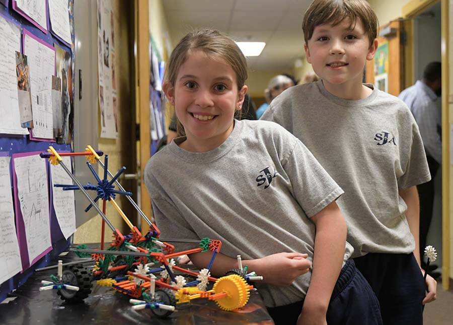 St. Joan of Arc Catholic School, Aberdeen, fourth-graders Sophia Prior, center, and Cayden Mahnke, pose with a Mars rover concept built for the school’s participation in the Maryland STEM Festival Nov. 9. (Kevin J. Parks/CR Staff)Read More