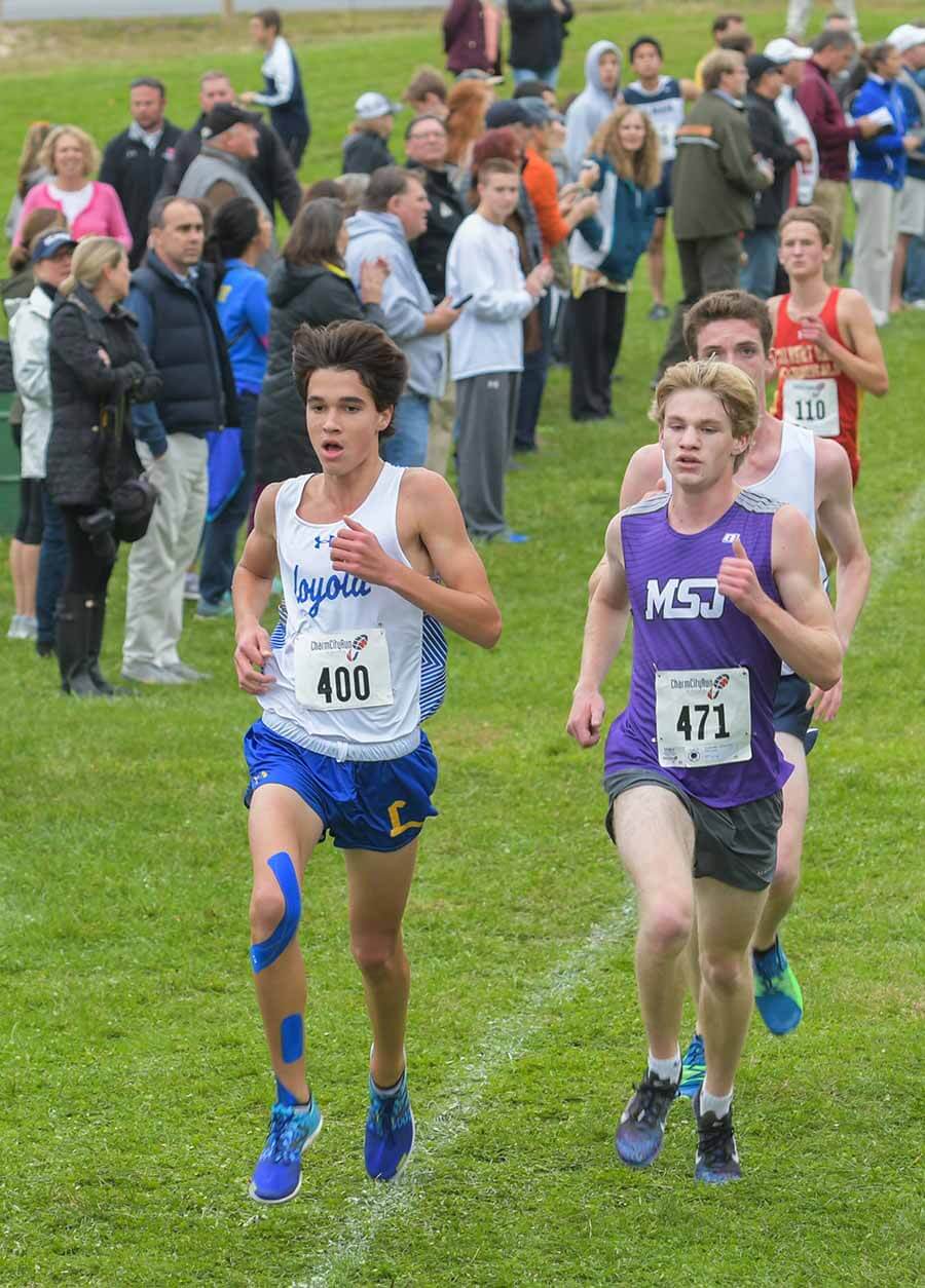 Loyola Blakefield’s Camden Gilmore, left, and Mount St. Joseph High School’s, Hunter Petrik, make a final push for their team’s overall victory at the MIAA Cross Country Championships at Oregon Ridge Park in Cockeysville Nov. 1. (Kevin J. Parks/CR Staff)Read More