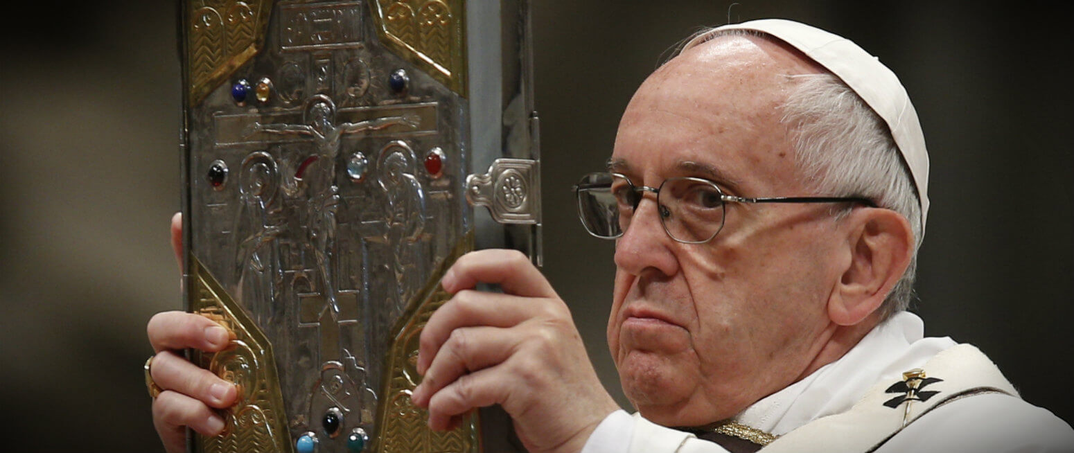 Pope Francis raises the Book of the Gospels as he celebrates Holy Thursday chrism Mass in St. Peter's Basilica at the Vatican April 13. (CNS photo/Paul Haring)Read More