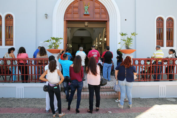 An overflow congregation stands outside during Mass Oct. 22 at St. Rafael the Archangel Church in Quebradillas, Puerto Rico. Bishop Daniel Fernandez of Arecibo, Puerto Rico, was the main celebrant during the Mass. (CNS photo/Bob Roller)Read More