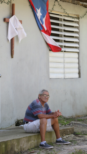 Andres Quitana sits under a cross and Puerto Rican flag outside his home Oct. 21 in Guajataca, Puerto Rico. Quitana and his family have been without power or water for more than a month after Hurricane Maria devastated the island. (CNS photo/Bob Roller)Read More
