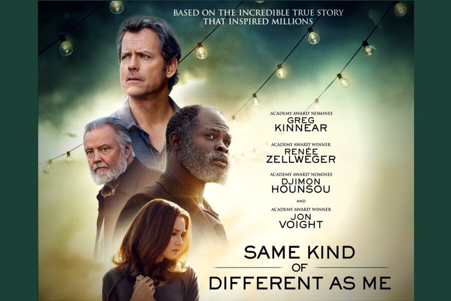 A poster for the movie "Same Kind of Different as Me" is displayed in this promotional photo for the film. The Catholic News Service classification is A-III -- adults. The Motion Picture Association of America rating is PG-13 -- parents strongly cautioned. Some material may be inappropriate for children under 13. (CNS photo/Paramount)Read More
