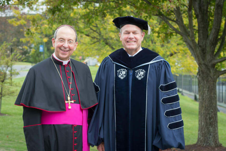 Archbishop William E. Lori was among those congratulating Timothy Trainor Oct. 23, when he was inaugurated as the 26th president of Mount St. Mary’s University in Emmitsburg. (Courtesy Mary Kate Battles/ Mount St. Mary's University)Read More