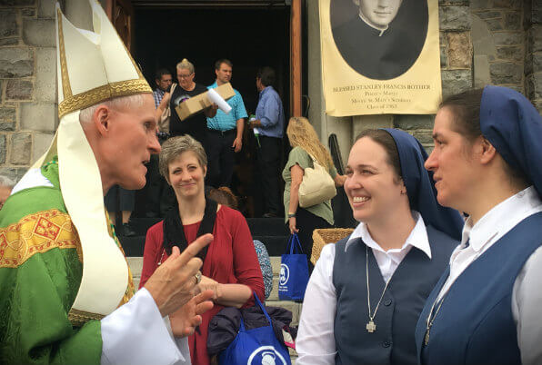 Women religious, kids and a couple of men also attended the MCWC closing Mass with Bishop Mark E. Brennan, pictured here speaking with two Daughters of St. Paul Oct. 8 (Photo courtesy of Sarah Jarzembowski)Read More