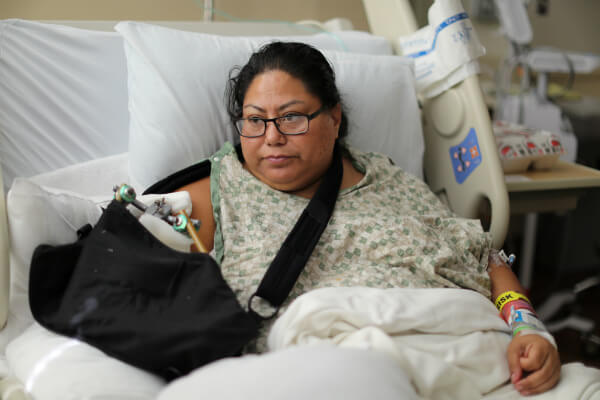Paola Bautista of Fontana, Calif., sits in her hospital bed after being shot Oct. 1 during the Route 91 music festival next to the Mandalay Bay Resort and Casino in Las Vegas. A gunman, identified as Stephen Craig Paddock, 64, was perched in a room on the 32nd floor of the resort hotel and unleashed...Read More