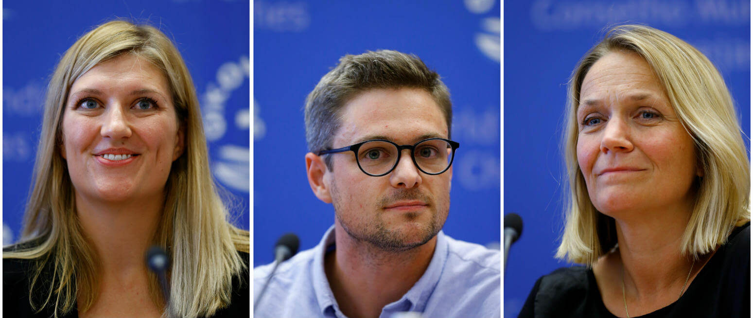 A combination photo shows members of the International Campaign to Abolish Nuclear Weapons in Geneva Oct. 6. The group won the 2017 Nobel Peace Prize. Pictured from left to right are Beatrice Fihn, executive director; Daniel Hogsta, coordinator; and Grethe Ostern, a member of the organization’s steering committee. (CNS photo/Denis Balibouse, Reuters)Read More