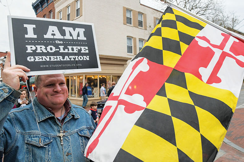 Steve Quirk, a parishioner of St. John the Evangelist in Severna Park, displays his support for life at the 2017 Maryland March for Life in Annaplis. (CR file)Read More