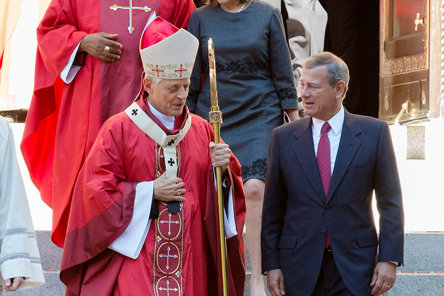 Cardinal Donald W. Wuerl of Washington walks with U.S. Chief Justice John Roberts as they leave the Cathedral of St. Matthew the Apostle in Washington after the annual Red Mass Oct. 1. The Mass traditionally marks the start of the court year, including the opening of the Supreme Court term. (CNS photo/Jaclyn Lippelmann, Catholic Standard)Read More