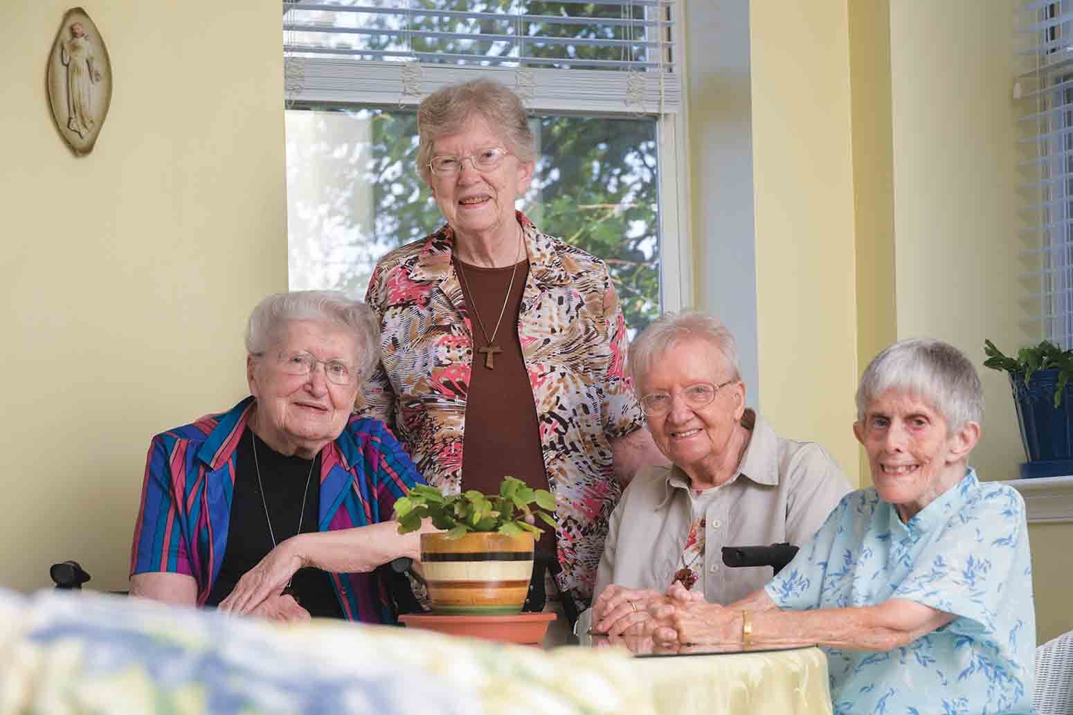 From left, Sisters of St. Francis of Assisi Barbara Barry, 83; Jodene Wydeven, 81; Beth Anne Hermann, 89; and Angela Perrizo, 90, pause during a chat in the sunroom of their convent at Clare Court. (Kevin J. Parks/CR Staff)Read More