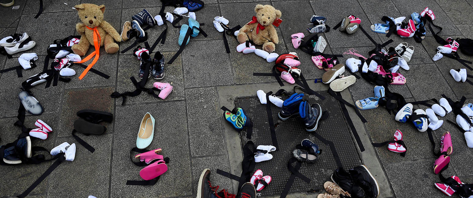 Children's shoes and toys are seen on a sidewalk in Dublin Aug. 25 as part of a demonstration against clerical sex abuse in Dublin. Pope Francis met privately for an hour and half with eight Irish survivors of clerical, religious and institutional abuse. (CNS photo/Clodagh Kilcoyne, Reuters)Read More