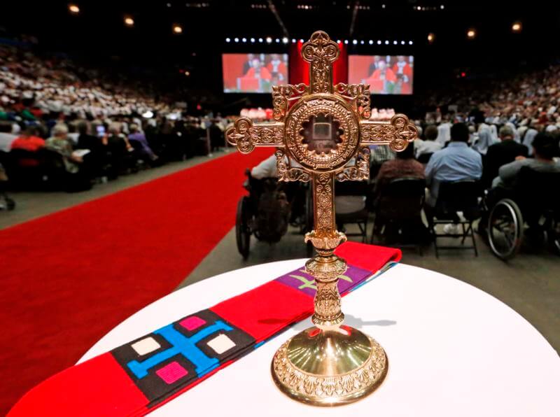 A reliquary holding a relic of Blessed Stanley Rother is seen during his beatification Mass Sept. 23 at Oklahoma City's Cox Convention Center. Blessed Rother, a priest of the Oklahoma City Archdiocese, was murdered in 1981 in the Guatemalan village where he ministered. (CNS photo/Steve Sisney, Archdiocese of Oklahoma City)Read More