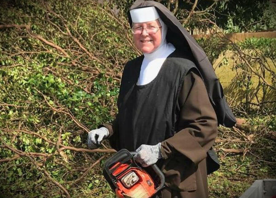Carmelite Sister Margaret Ann, principal of Archbishop Coleman Carrol High School in Miami, holds the chainsaw she used to help clean up debris following Hurricane Irma. (CNS photo/courtesy Sister Margaret Ann)Read More