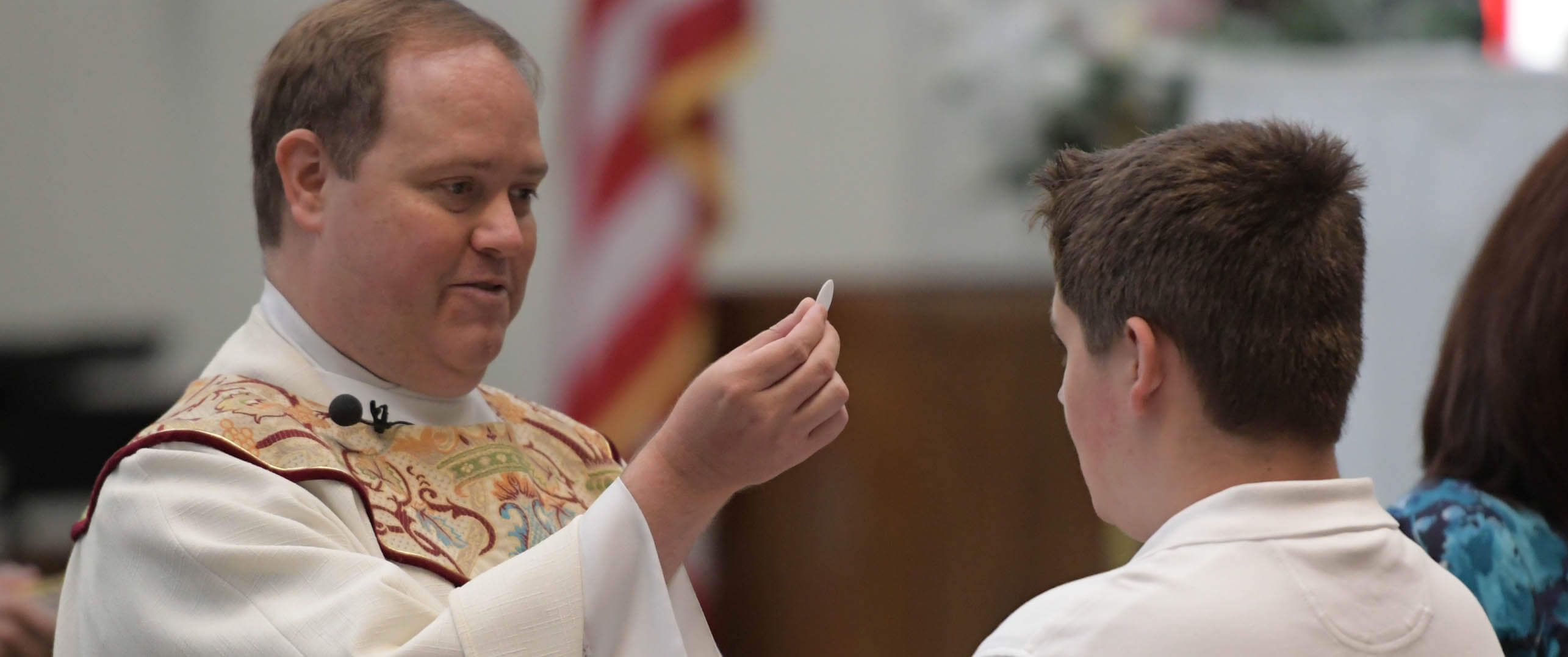 Father T. Austin Murphy Jr., pastor of Our Lady of Hope in Dundalk and St. Luke in Edgemere, distributes Communion during a May school Mass for Our Lady of Hope-St. Luke School in Dundalk. (Kevin J. Parks/CR Staff)Read More