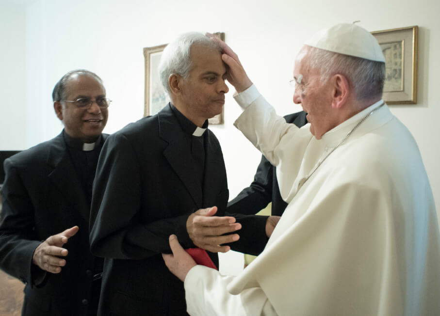 Salesian Father Tom Uzhunnalil, who was released Sept. 12 after having been kidnapped 18 months ago in Yemen, is anointed by Pope Francis during a Sept. 13 meeting at the Vatican. (CNS photo/L'Osservatore Romano)Read More