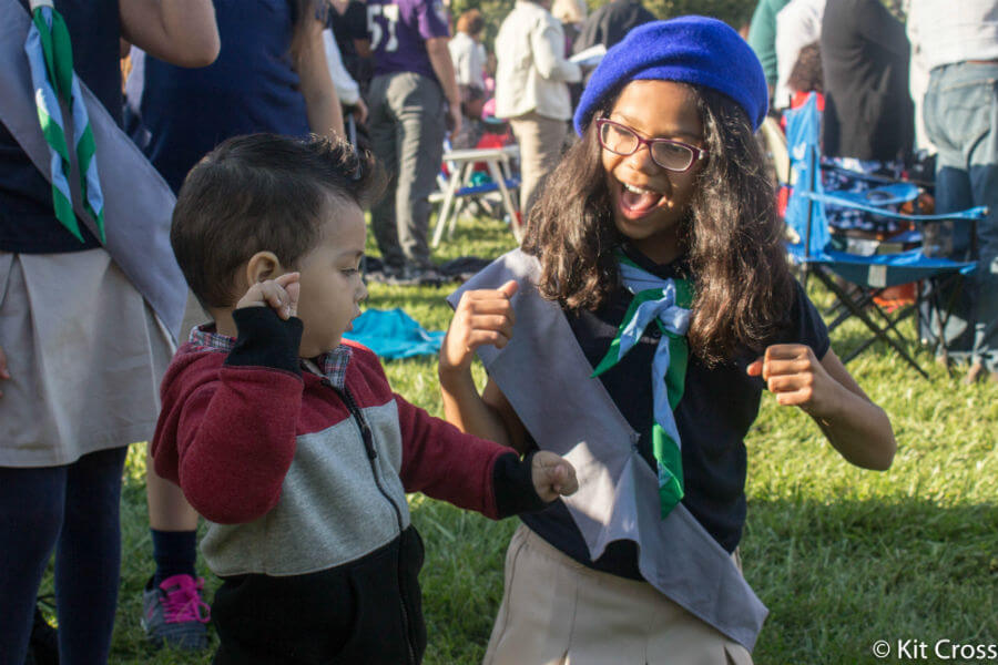 A young member of the Baden-Powell Service Association’s Troop 2010 dances and sings with a young parishioner during St. John the Evangelist Catholic Church’s 50th Anniversary Mass at the Wilde Lake Interfaith Center in Columbia Sept. 9. (Kit Cross/Special to the Review)Read More