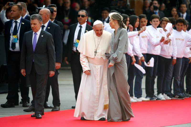 Pope Francis walks with Colombian President Juan Manuel Santos and his wife, Maria Clemencia Rodriguez Munera, upon his arrival in Bogota, Colombia, Sept. 6. (CNS photo/Stefano Rellandini, Reuters)Read More