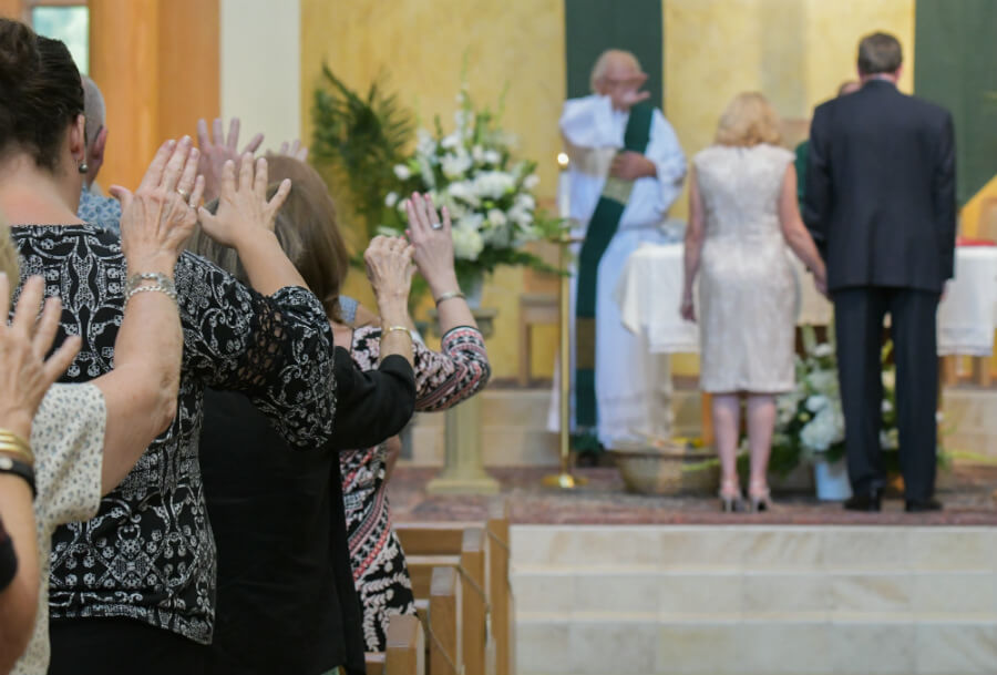 Parishioners of St. Andrew by the Bay in Annapolis pray for Lynn Thomas and Brian Yeatman during their Aug. 19 wedding. (Kevin J. Parks/CR Staff)Read More