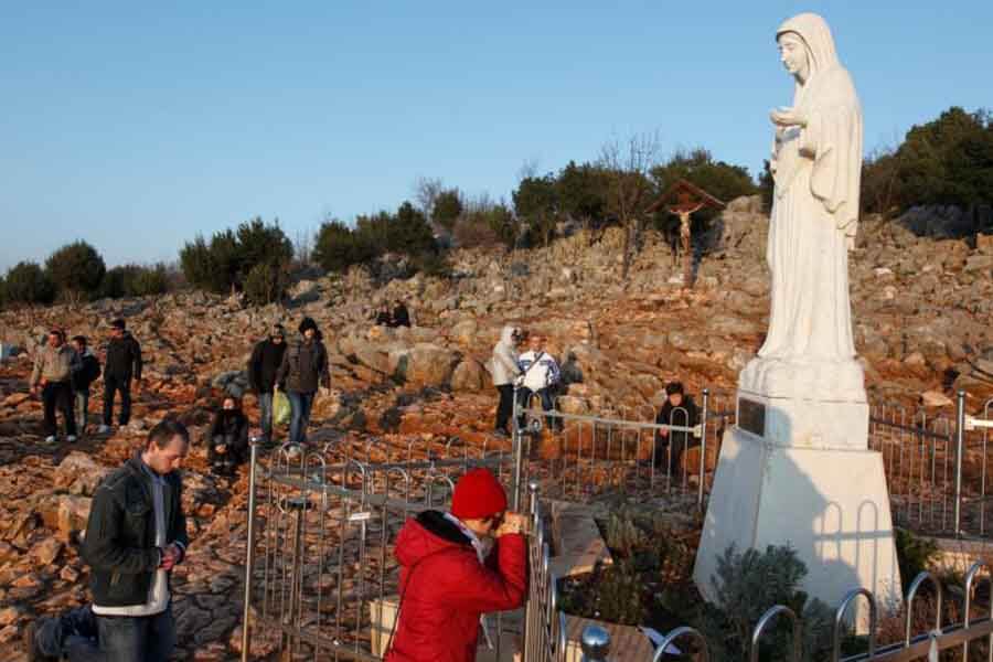 Pilgrims pray in front of a statue of Mary in 2011 on Apparition Hill in Medjugorje, Bosnia-Herzegovina. Archbishop Henryk Hoser of Warsaw-Praga, Poland, who inspected the shrine for Pope Francis, predicts the Vatican will soon recognize its Marian apparitions. (CNS photo/Paul Haring)Read More
