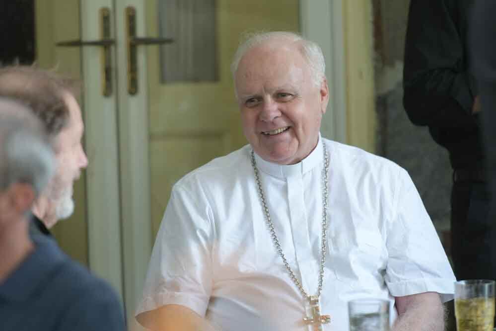 Cardinal Edwin F. O'Brien, former archbishop of Baltimore, enjoys conversation at an Aug. 21 celebration of clergy vocations in families. (Kevin J. Parks/CR Staff)Read More