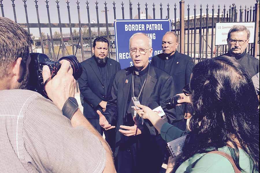 Bishop Mark J. Seitz of El Paso, Texas, speaks to reporters before attending an Aug. 7 meeting with immigration officials to try to stop the imminent deportation of Maria De Loera, whose 8-year-daughter is in a Texas hospital being treated for bone cancer. De Loera, the child's only caretaker, was granted a six-month stay from...Read More