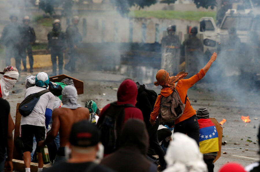 Demonstrators clash with riot security forces while rallying against Venezuela President Nicolas Maduro's government July 28 in Caracas. Cardinal Jorge Urosa Savino of Caracas said the nation's government must take the blame for at least 10 deaths related to a controversial election. (CNS photo/Carlos Garcia Rawlins, Reuters)Read More