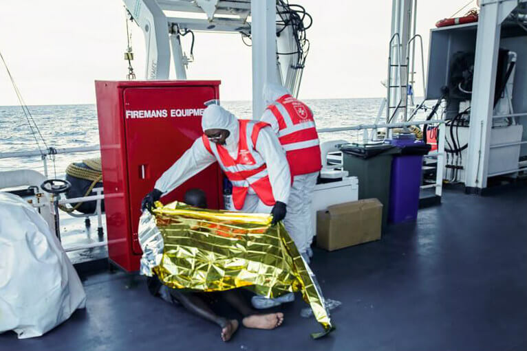 A volunteer of the Order of Malta's Italian Relief Corps wraps a migrant rescued at sea in a thermal blanket. Since 2007, the order's relief corps has worked alongside the Italian national coast guard rescuing refugees stranded in the Mediterranean Sea. (CNS photo/courtesy CISOM)Read More
