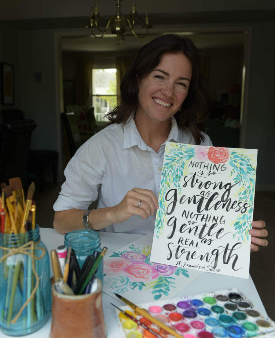 Danielle Turner shares artwork she created using a quote from St. Francis de Sales. The mother of four and former teacher creates custom watercolor art that celebrates the sacraments. (Kevin J. Parks/CR Staff)Read More