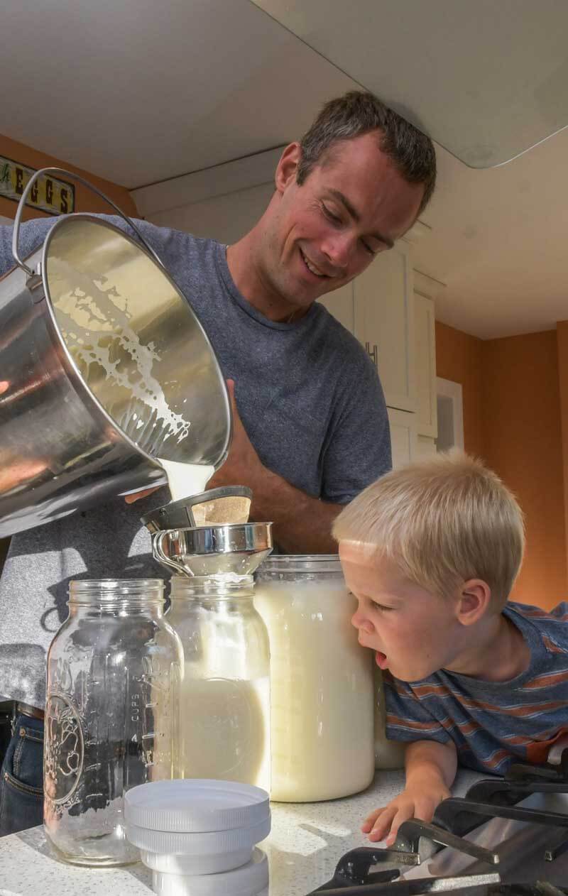 Nicholas Daub watches his father, Peter, pour milk extracted from the family cow just moments earlier on the family's Reisterstown farm. (Kevin J. Parks/CR Staff)Read More