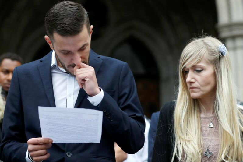 Connie Yates and Chris Gard read a statement outside London's High Court July 24 after a hearing on their baby's future. The British couple's baby, Charlie Gard, who was at the center of a legal battle that captured the world's attention, died July 28, just over a one week before his first birthday. (CNS photo/Peter...Read More
