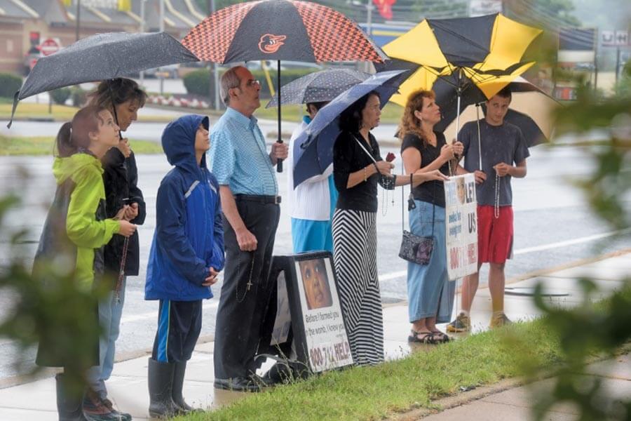 From left, Faith Molina; her mother, Kelly; brother, Kevin; Terry Mahoney; Ann Boland; Carolyn Smith; Maria Hayden; and her son, Jimmy; pray outside the Hillcrest Clinic on Baltimore National Pike in Catonsville. (Kevin J. Parks/CR Staff)Read More