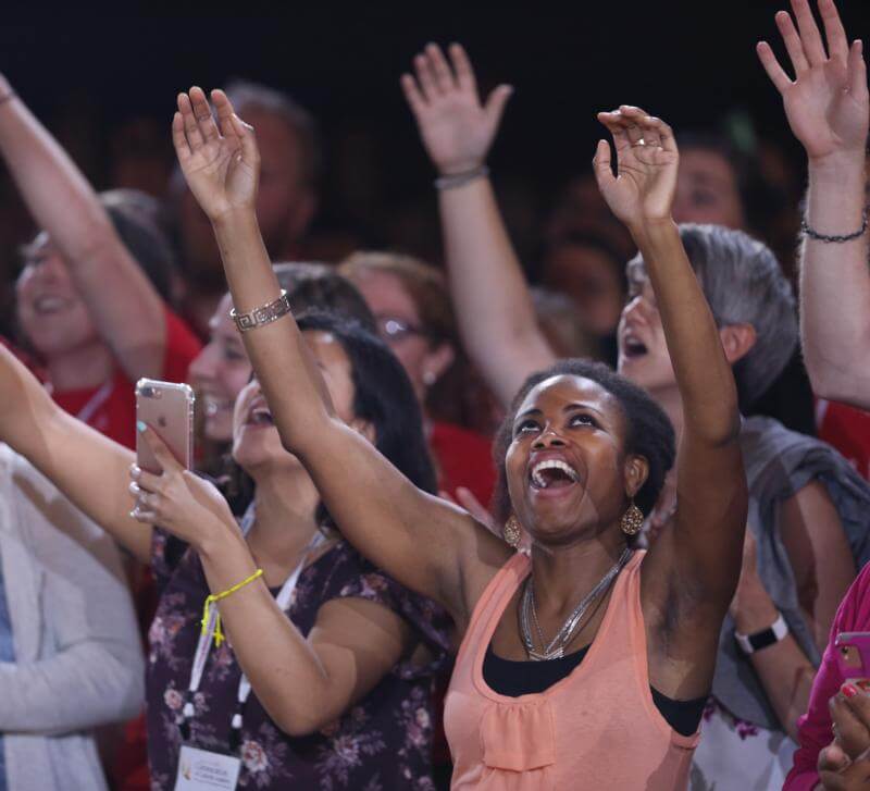Young people lift their arms in prayer as Catholic musician Matt Maher performs July 3 during the "Convocation of Catholic Leaders: The Joy of the Gospel in America" in Orlando, Fla. Leaders from dioceses and various Catholic organizations gathered for the July 1-4 convocation. (CNS photo/Bob Roller)Read More