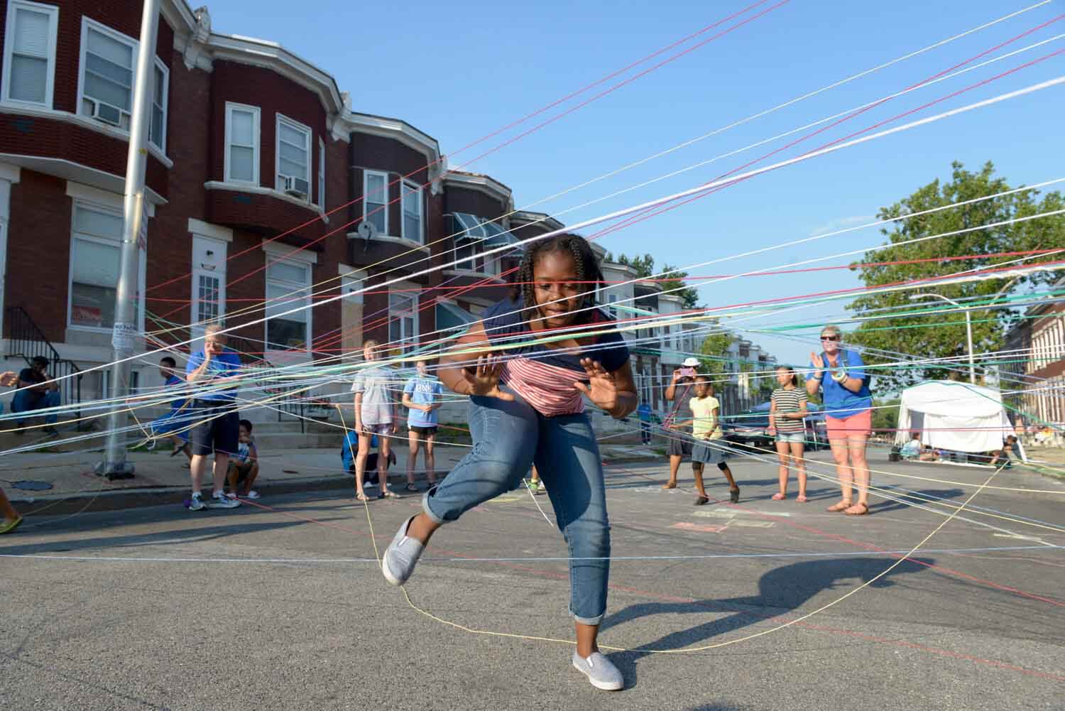 Mylai Harris makes her way through an obstacle course as part of the fun and games during the 2nd annual Dare to Care interfaith summer camp on Harlem Avenue in West Baltimore June 30. (Kevin J. Parks | CR Staff)Read More