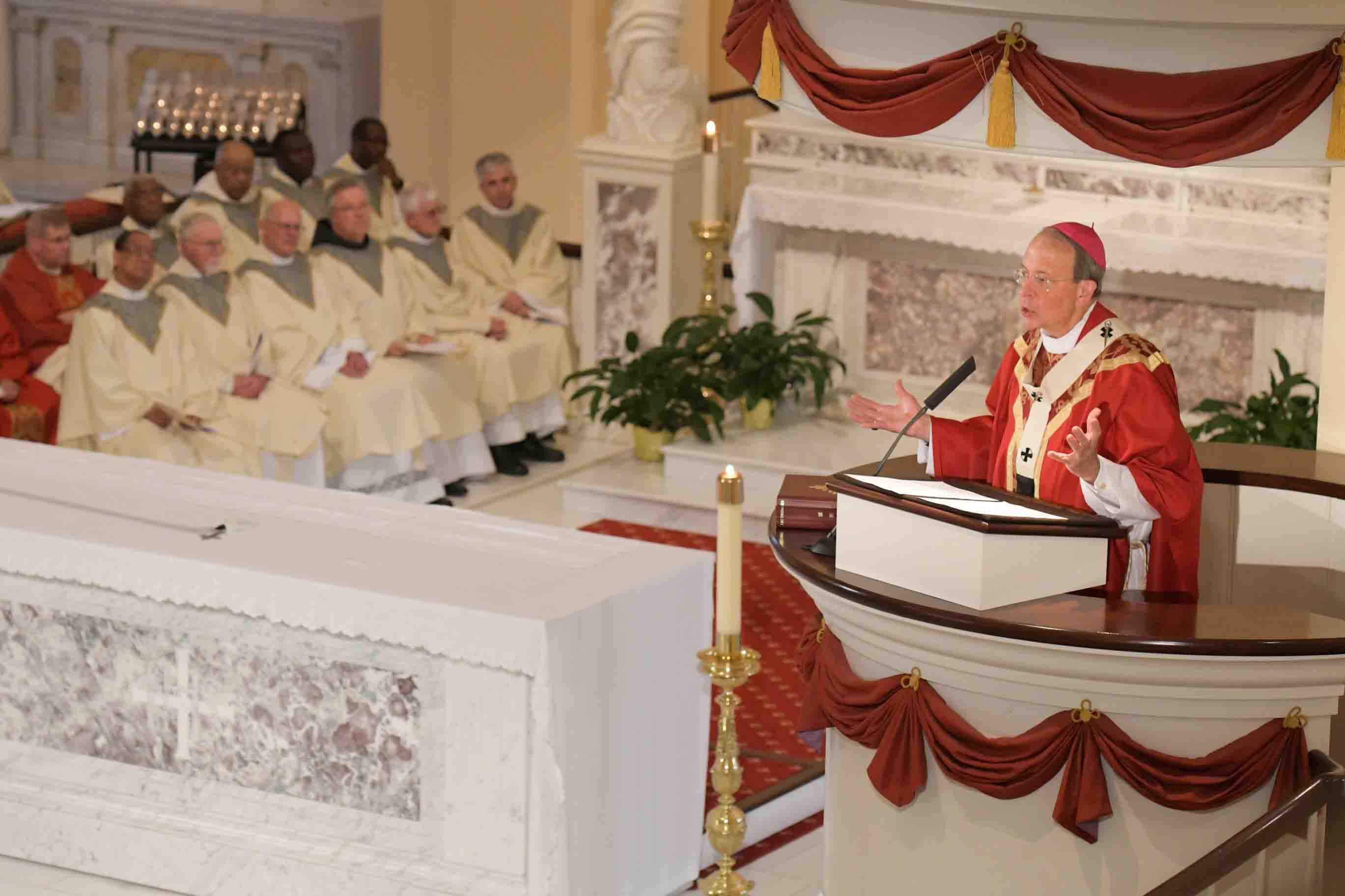 Archbishop William E. Lori pays tribute to the sacrifices of St. Thomas More and St. John Fisher during his homily at the opening Mass of Fortnight for Freedom at the Basilica of the National Shrine of the Assumption of the Blessed Virgin Mary in Baltimore June 21. (Kevin J. Parks/CR Staff)Read More