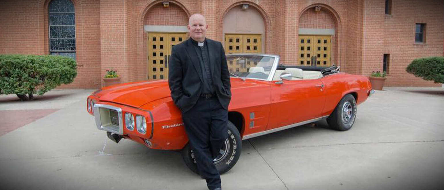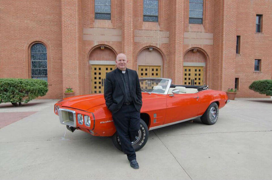 Father Matthew Keller, rector of Sacred Heart Cathedral in Gallup, N.M., poses June 8 with a 1969 Pontiac Firebird Convertible that he refurbished for a raffle in support of vocations for the Diocese of Gallup. (CNS photo/V8 for Vocations)Read More